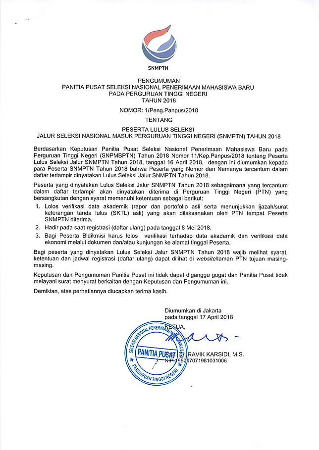 Jangan lupa untuk cek ulang dengan pengumuman di website resmi http://pengumuman.snmptn.ac.id dengan cara memasukkan nomor pendaftaran dan tanggal lahir.